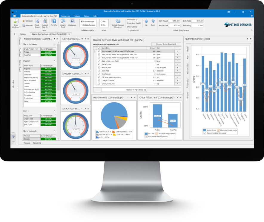 Create recipes that are more complete than current commercial pet food. PetDiet365 targets more nutrients than commercial standards.